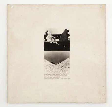 Dennis Oppenheim, Parallel Stress, 1970. Black and white print on board. 39 x 39 inches.